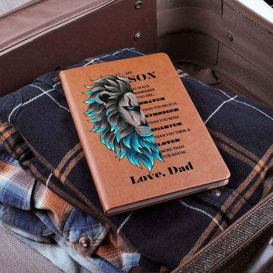 My Son | Braver, Stronger, Smarter and Loved | Dad | Graphic Leather Journal