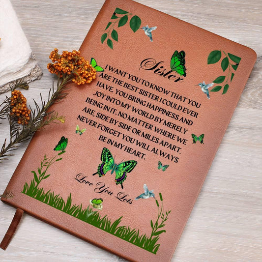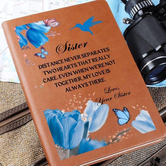 Sister | Distance Never Separates Hearts | From Sister | Graphic Leather Journal