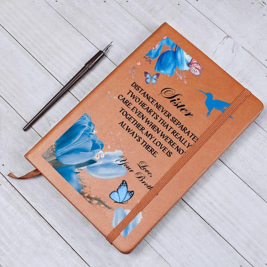 Sister | Distance Never Separates Hearts | From Brother | Graphic Leather Journal