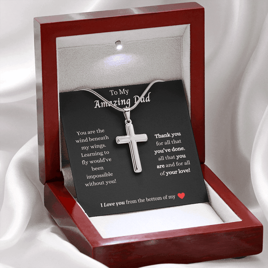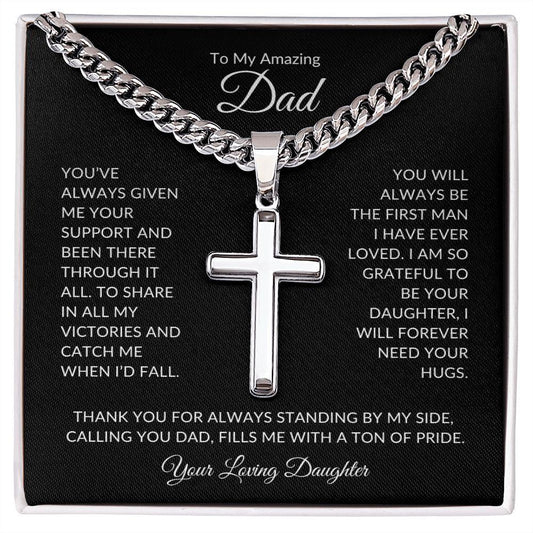 To My Amazing Dad | First Man I Ever Loved | Cuban Chain with Artisan Cross Necklace - Gift for Father's Day, Birthdays, Holidays, Just Because