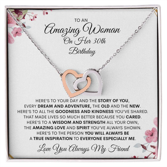 To An Amazing Woman On Her 30th Birthday | Interlocking Hearts Necklace