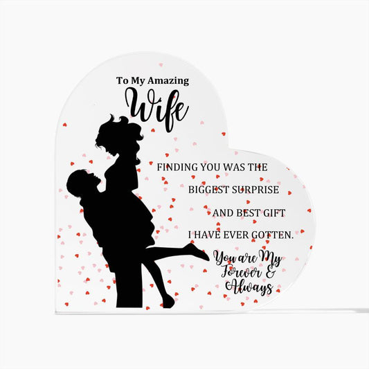 To My Amazing Wife | The Best Gift I Ever Got | Heart Shaped Acrylic Plaque (LED Option)