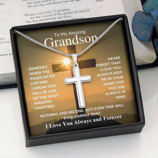 To My Amazing Grandson | Forever in My Heart | Cross Necklace - Gift for Birthday, Confirmation, Holidays