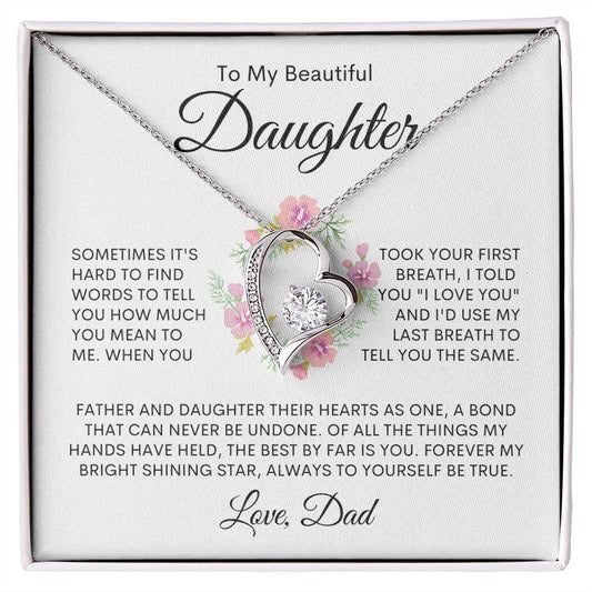To My Beautiful Daughter | Father & Daughter Their Hearts as One | Forever Love Necklace
