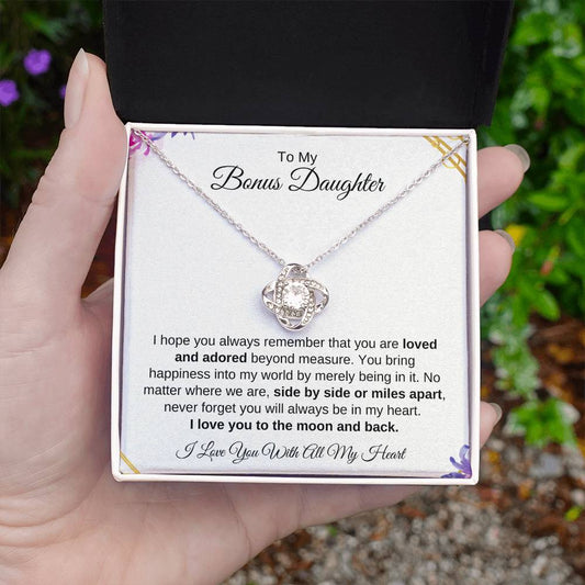 To My Bonus Daughter | You are Loved and Adored | Love Knot Necklace