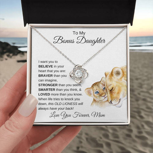 To My Bonus Daughter | You are Brave, Strong & Smart | Love Knot Necklace