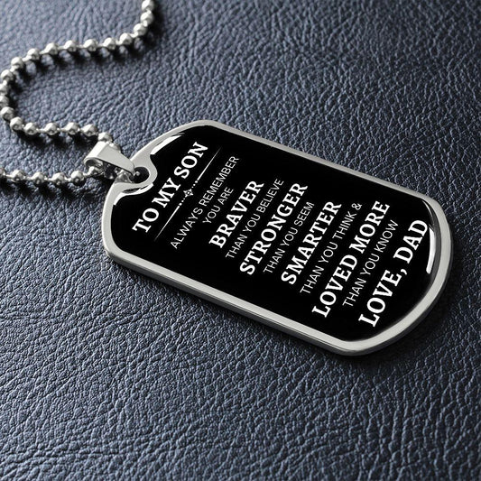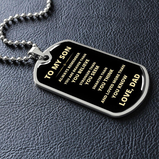 To My Son | Always Remember - Love, Dad (White Text Dog Tag)