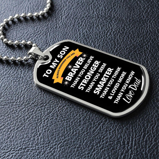 To My Son - You are Braver Than You Believe - Dad (White Design) Dog Tag