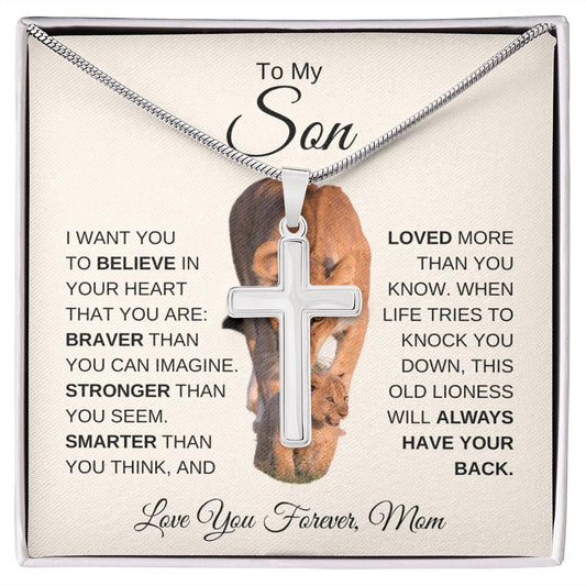 To My Son - You are Brave, Strong & Smart | Cross Necklace
