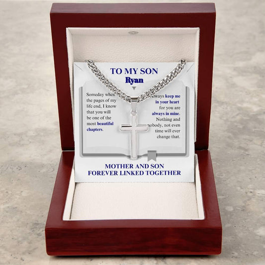 To My Son | Always in My Heart | Mom | Cuban Chain with Artisan Cross Necklace