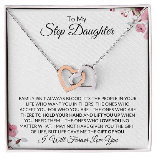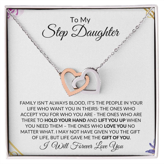 To My Step Daughter | I Will Forever Love You | Interlocking Hearts Necklace