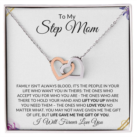 To My Step Mom | Life Gave Me the Gift of You | Interlocking Hearts Necklace - Gift for Mother's Day, Birthdays, Holidays