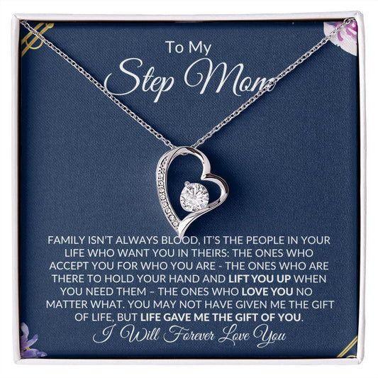To My Step Mom | Life Gave Me the Gift of You | Forever Love Necklace - Gift for Mother's Day, Birthdays, Holidays