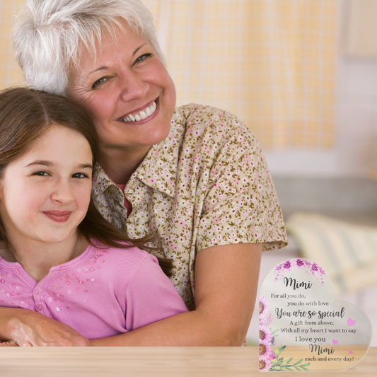 Mimi | You are so Special | Pink Printed Heart Shaped Acrylic Plaque | Gift for Mother's Day, Birthday, All Occasions