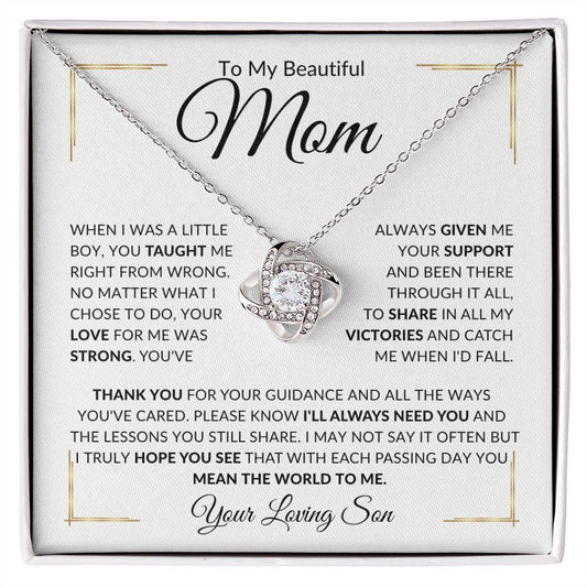 To My Beautiful Mom | You Mean the World to Me - Loving Son | Love Knot Necklace