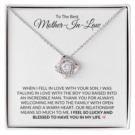 To The Best Mother-In-Law | Lucky and Blessed | Love Knot Necklace - Gift for Mother's Day, Wedding, Birthday, Holidays
