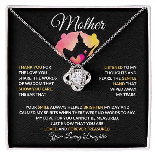 Mother | Loved & Forever Treasured | Your Loving Daughter | Love Knot Necklace