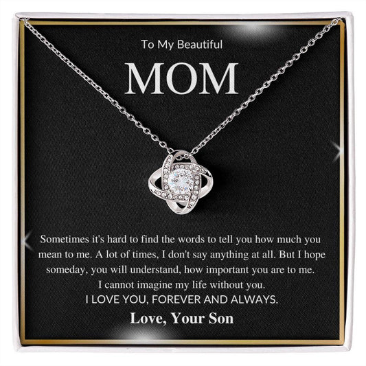 To My Beautiful Mom | Forever and Always - Son | Love Knot Necklace - Gift for Mother's Day, Birthday, Holidays