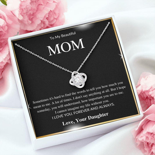 To My Beautiful Mom | Forever and Always - Daughter | Love Knot Necklace - Gift for Mother's Day, Birthday, Holidays