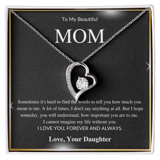 To My Beautiful Mom | Forever & Always - Daughter | Forever Love Necklace - Gift for Mother's Day, Birthday, Holidays