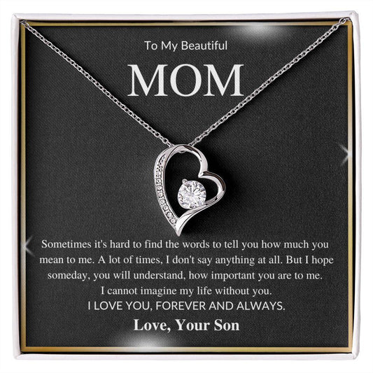 To My Beautiful Mom | Forever and Always - Son | Forever Love Necklace - Gift for Mother's Day, Birthday, Holidays