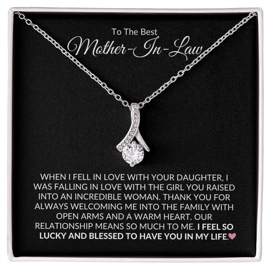 To The Best Mother-In-Law | Lucky and Blessed (Son-In-Law) | Alluring Beauty Necklace - Gift for Mother's Day, Wedding, Birthday, Holidays