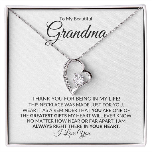 To My Beautiful Grandma | Always In Your Heart | Forever Love Necklace - Gift for Mother's Day, Birthday, Holidays