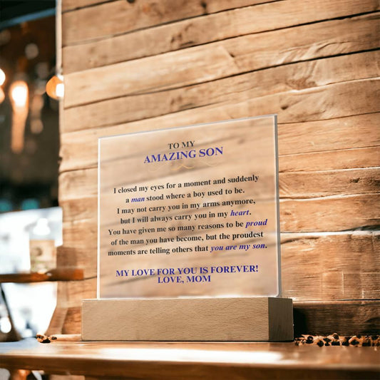 To My Amazing Son | Proud of You | Mom | Square Acrylic Plaque