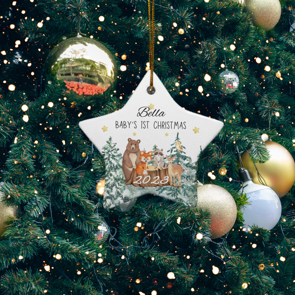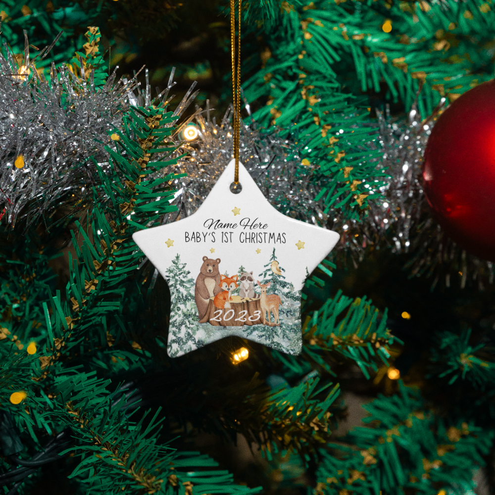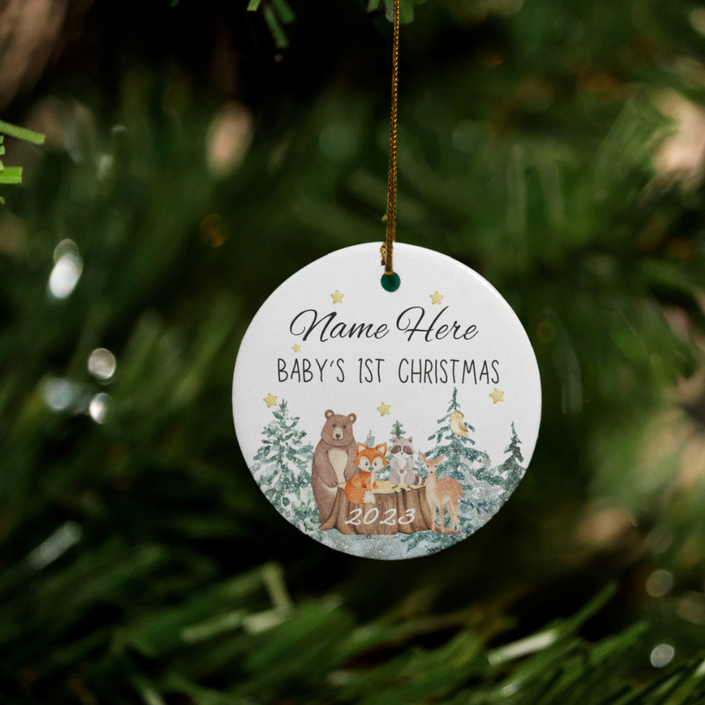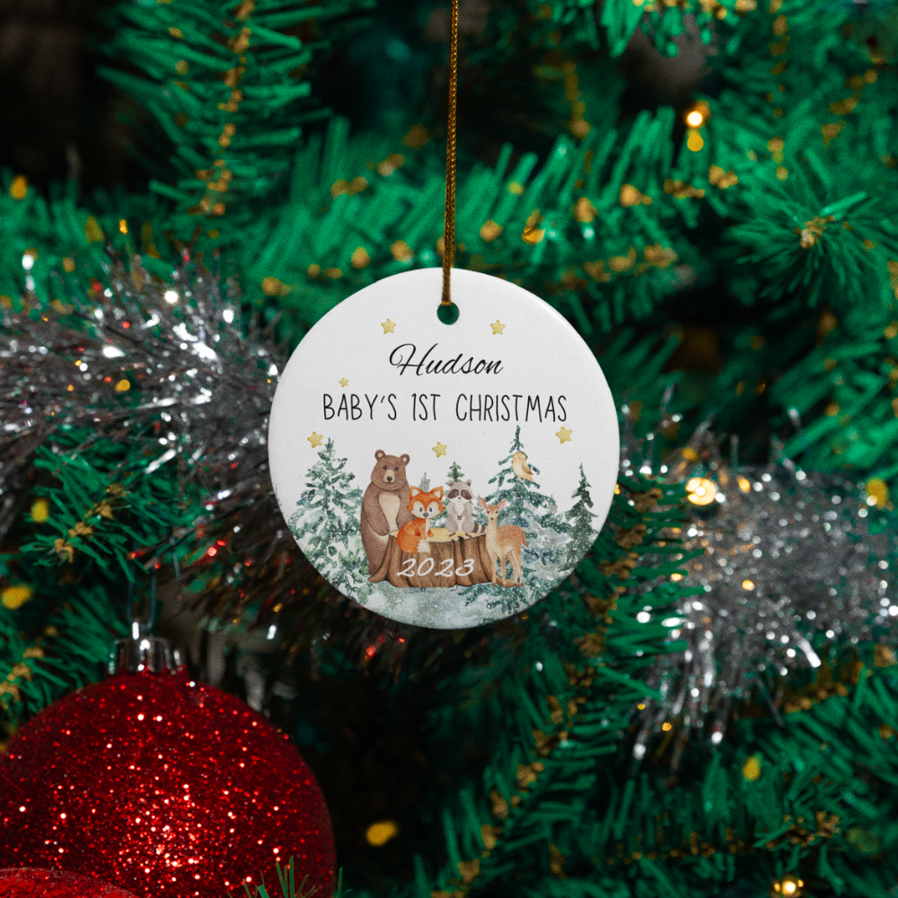 Personalized Baby's 1st Christmas 2023 Ornament - Woodland Animals