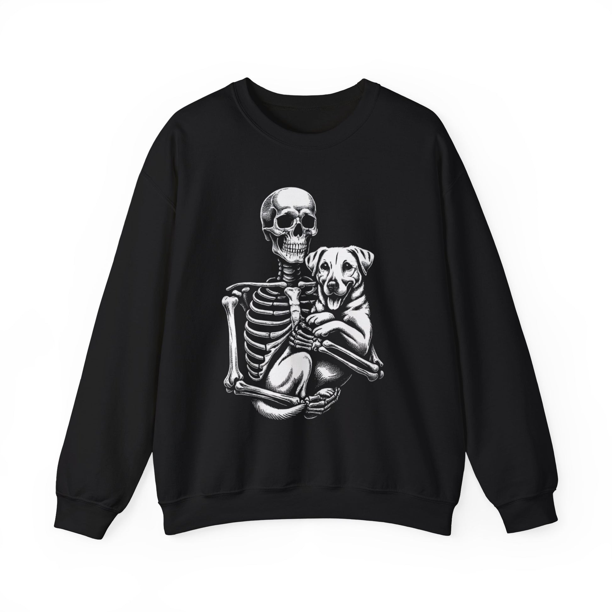 Skeleton and Dog Sweatshirt, Unisex Crewneck, Alternative Fashion, Pet Lovers Gift, Halloween Apparel, Cozy Everyday Wear